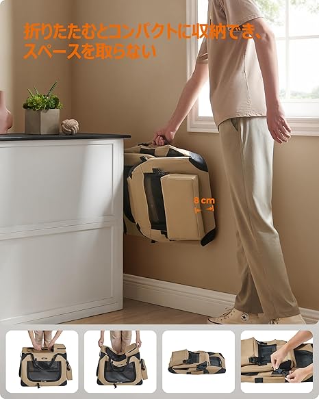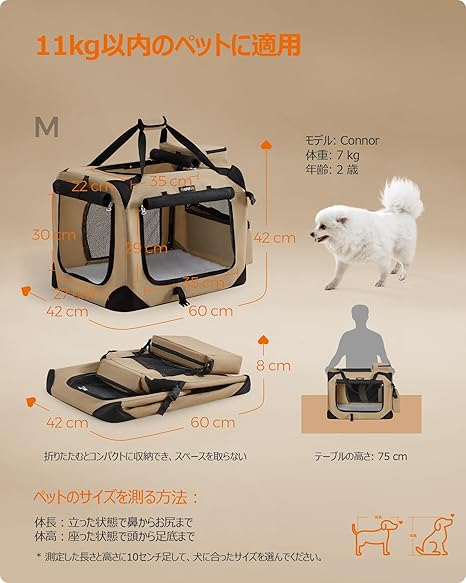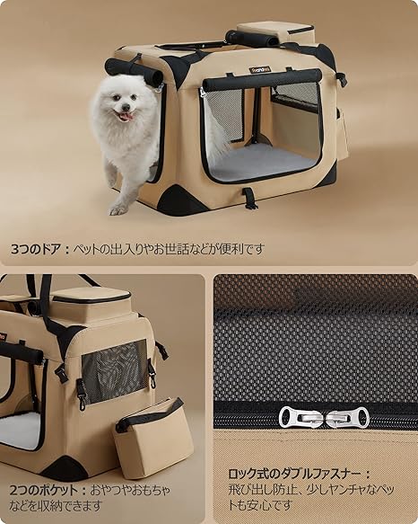 Sulankstoma augintinių nešioklė pagaminta iš aukštos kokybės oksfordo audinio ir sutvirtinta metaliniu rėmu, kuris užtikrina stabilumą bei erdvę augintiniui judėti. Tinkliniai langai užtikrina gerą oro cirkuliaciją ir yra atsparūs įbrėžimams. Apačioje esantis nuimamas vilnonis kilimėlis suteikia komfortą, todėl nešioklė gali būti naudojama ir kaip jaukus guolis. Turi erdvią kišenę reikmenims laikyti. Maksimali apkrova: 7–11 kg. Lengvai sulankstoma ir kompaktiškai laikoma, ideali kelionėms su šunimis ar katėmis.