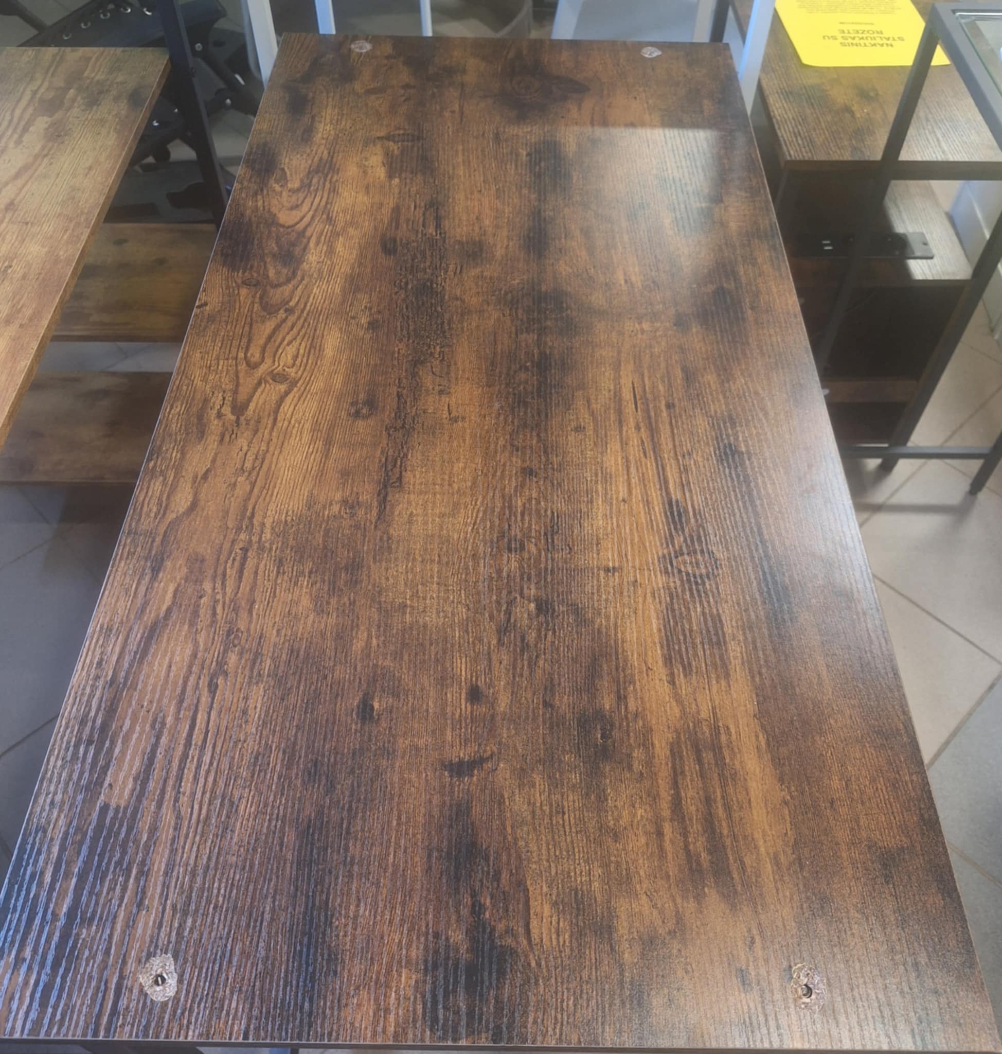 Turi broką, kur sukasi varžtai buvo užklijuoti lipdukai, nulupant atkibo su plokšte. Plieninis rėmas užtikrina stabilią ir tvirtą konstrukciją, todėl šis stalas atlaiko iki 50kg. Reguliuojamos kojelės išlaiko kompiuterio stalą subalansuotą ir ant nelygių grindų.