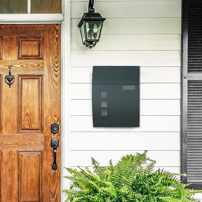 Milteliniu būdu dažyta plieninė pašto dėžutė, pasižyminti apvaliomis ir elegantiškomis linijomis, ta…