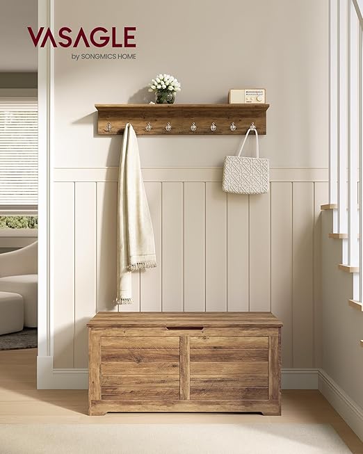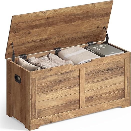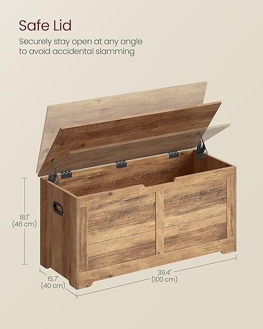 Daiktadėžėje su dangčiu yra erdvus skyrius, kuriame galite susidėti antklodes, pagalves, drabužius ir knygas, kad jūsų miegamasis būtų tvarkingas. Dangtis turi 2 tvirtus vyrius, kurie padeda jam saugiai išlikti atidarytam bet kokiu kampu, veiksmingai apsaugodamas jį nuo atsitiktinio trenksmo ir pirštų prispaudimo. Viršutinė dalis atlaiko iki 136 kg, o skyrius – iki 60 kg, todėl galite ramiai sėdėti ant suoliuko ir persiauti batus, o paslėptame skyriuje susidėti daugybę daiktų. Dėl 2 gerai suprojektuotų, išpjautų rankenų šonuose šią daiktadėžę galite lengvai perkelti bet kur, kur norite, nesukeldami nepatogumų rankoms.